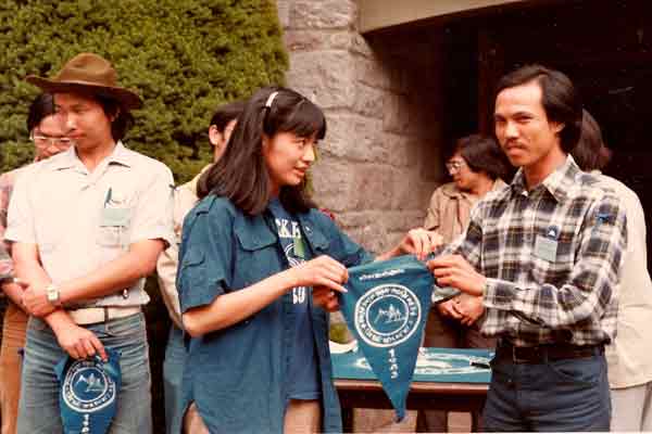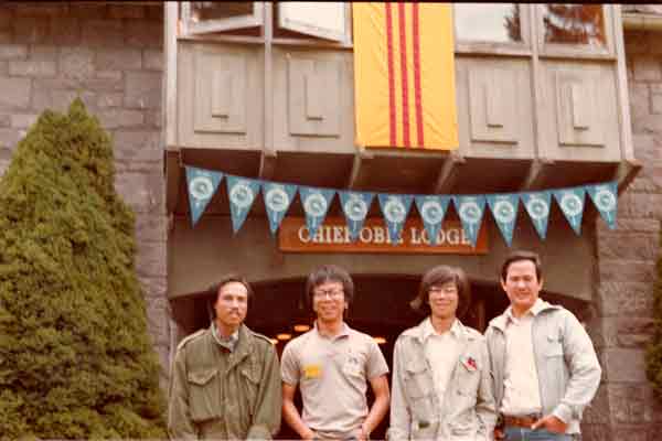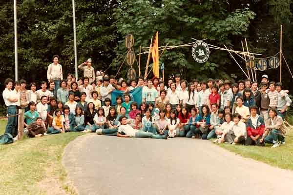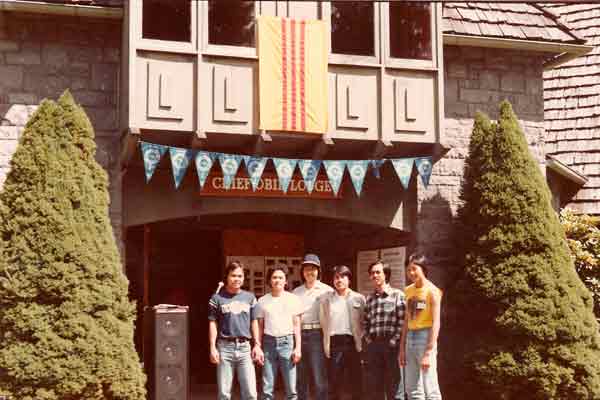 | Trại sinh chụp hình lưu niệm ở cổng trại Trại Họp Bạn Tây Bắc Hoa Kỳ 1983, tổ chức tại Portland, Oregon