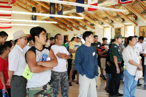 Và một số rất đông quý vị khác mà người tường thuật chưa kịp ghi nhận thì đã lên xe quay về Seattle sau khi dự khán lễ Khai Mạc Trại Họp Bạn "Hồn Nước" 2008. (Người cao niên nhất có mặt là Cụ Trương Sĩ Triền 92 tuổi và em bé nhỏ nhất là cháu Võ Thành Đạt 3 tuổi - Cháu nội của nhà báo Võ Thành Đông - Và có ai nghĩ tới thêm một chút rằng 89 năm trước ông cố, bà cố, ông nội, bà nội, cha mẹ và chính cháu Đạt đang ở đâu? Vậy mà bây giờ cháu Đạt và cụ Triền đang nghiêm chỉnh cùng chào lá Quốc Kỳ trong lễ khai mạc. Hình ảnh nầy đã là một thành công của BTC ngay từ phút đầu.)