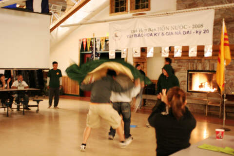 Nhanh như "Sóc" một trại sinh, mặc dầu nói tiếng Mỹ nhiều hơn tiếng Việt , học sử ký Hoa Kỳ nhiều hơn sử Việt nhưng đã bật ngay: Văn Lang, Âu Lạc, Nam Việt, Đại Cồ Việt, Đại Ngu, Đại Việt, Vạn Xuân, Hoàng Việt, Giao Châu, Giao Chỉ, An Nam ..và Việt Nam . Các bạn trẻ trại sinh thật là giỏi mặc dầu nhiều bạn không thông thạo cho lắm về Việt ngữ nhưng lại trả lời được bằng những câu ca dao và Việt Sử rất tài tình. Rất hay. Hoan hô! Hoan Hô! "Cùng quay quần ta vui-vui-vui. Ta hát với nhau chơi-chơi-chơi. Làm vui thú bao người-người-người"